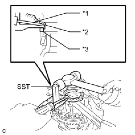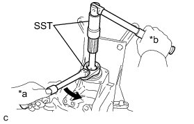 (a) Using SST, a screwdriver and a hammer, remove the No. 1 transfer output shaft spacer.