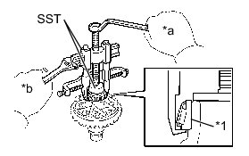 (b) Using SST, remove the gear nut.