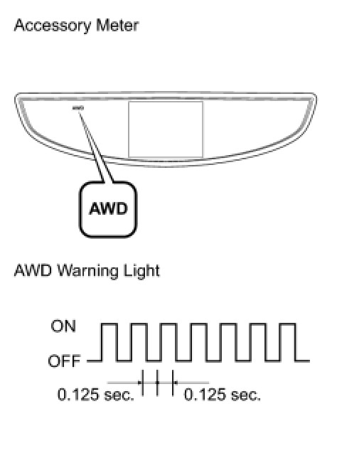 When the ignition switch is turned from off to ON, the AWD warning light will illuminate for 4 seconds. Then it will turn off.