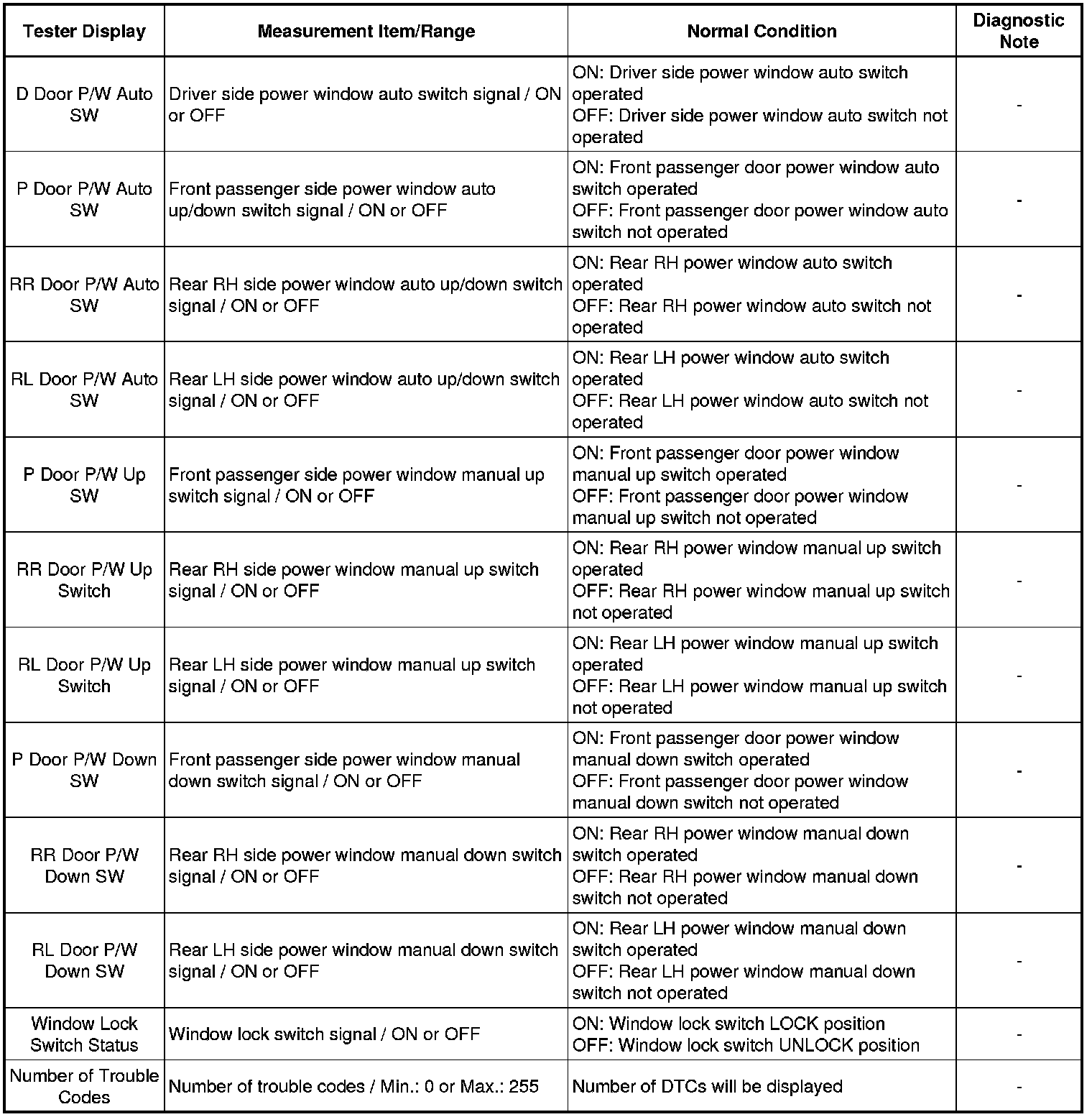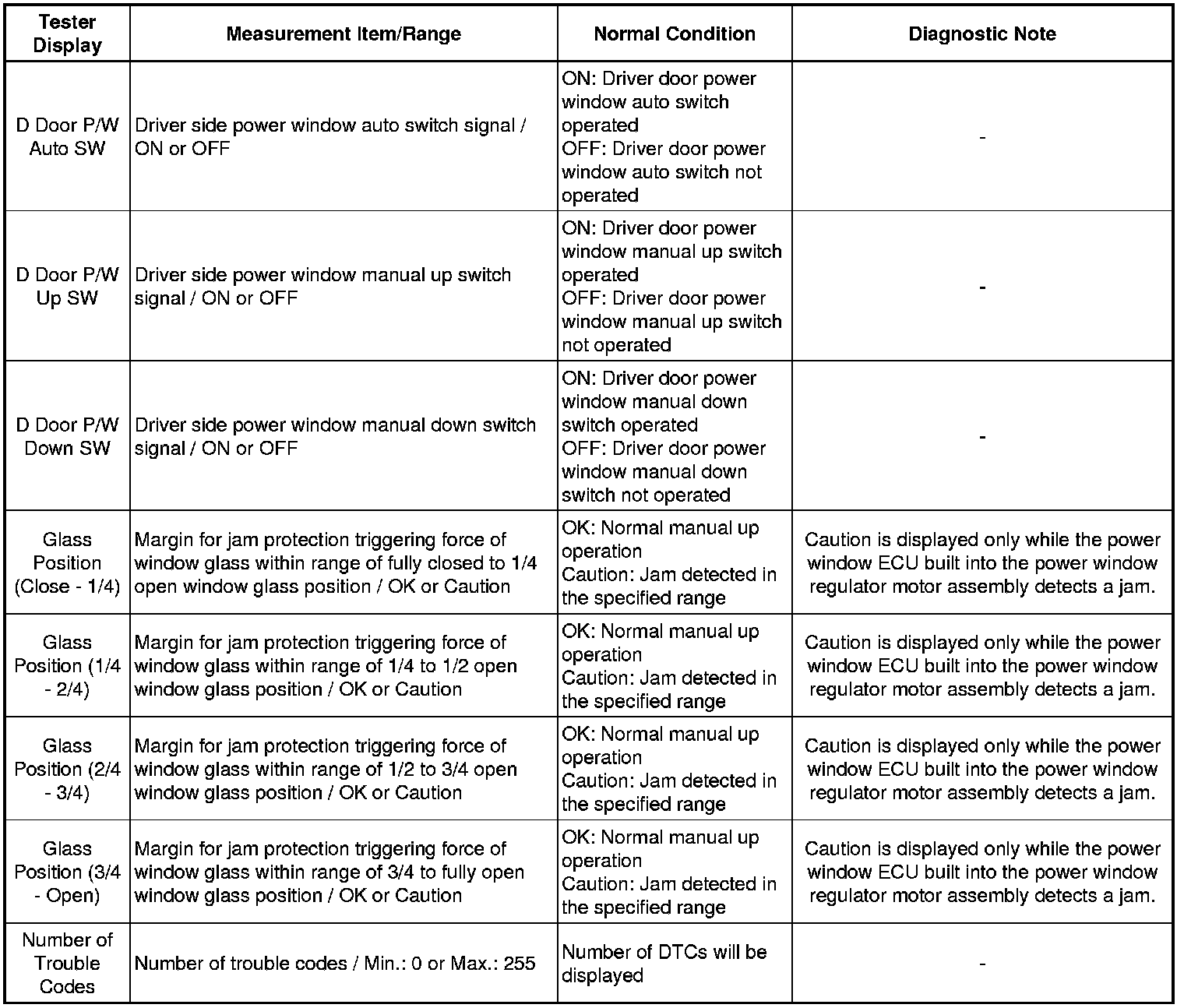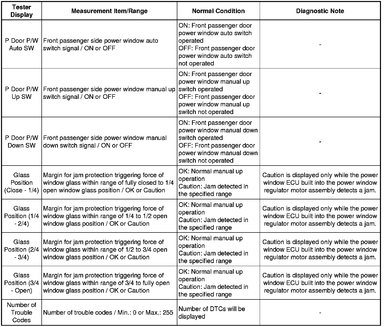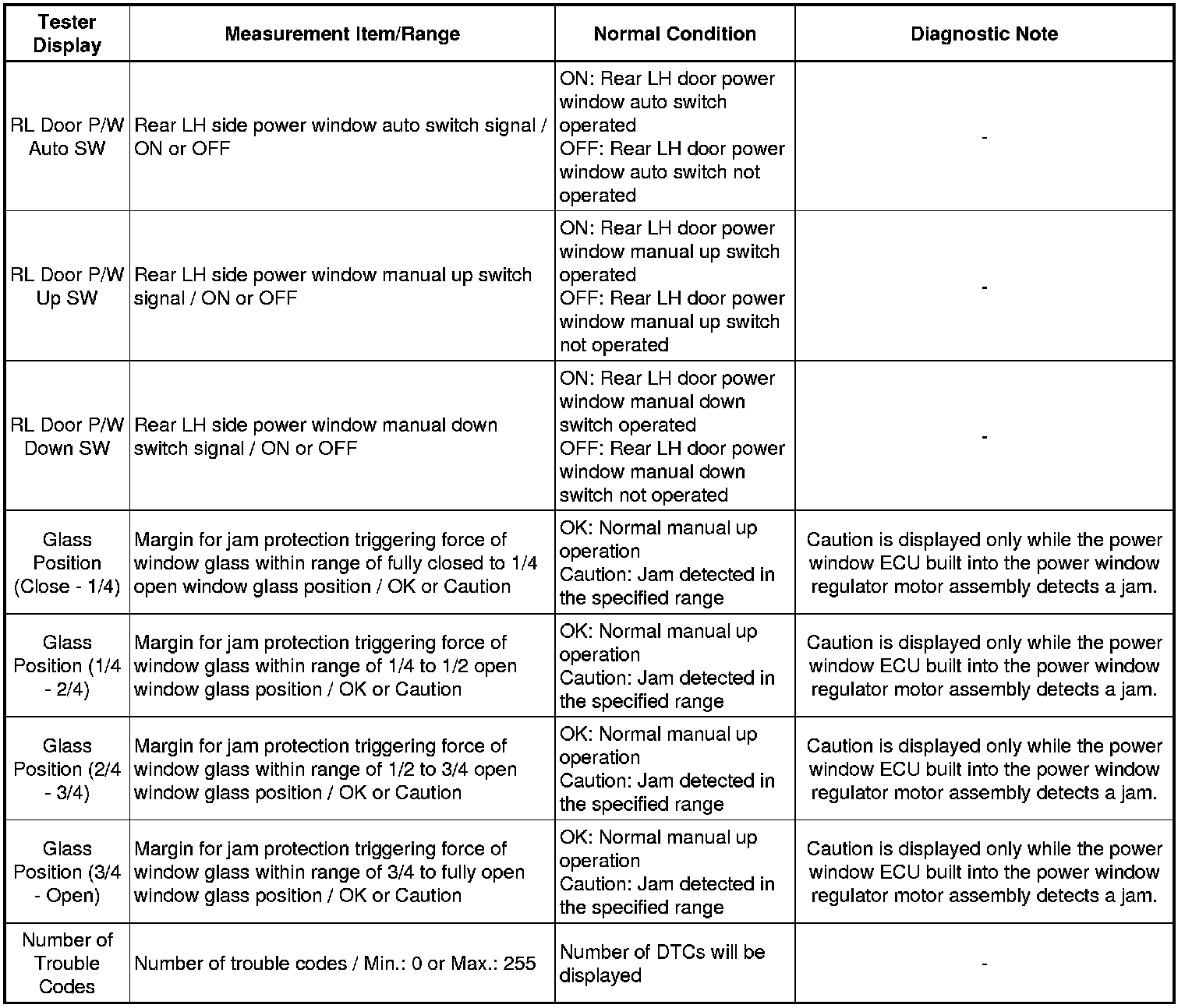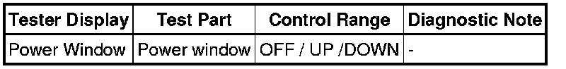 WINDOW / GLASS: POWER WINDOW CONTROL SYSTEM: DATA LIST / ACTIVE TEST
