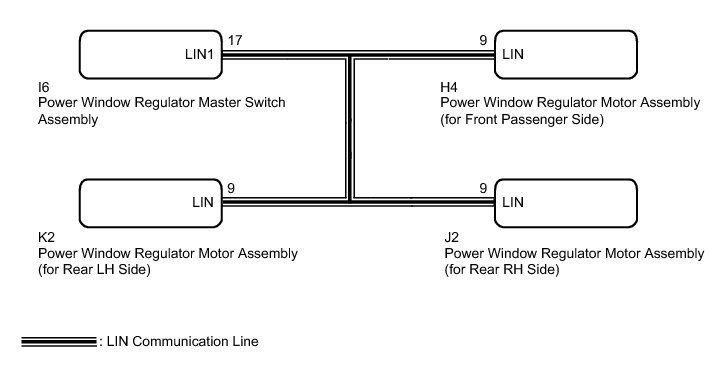The power window control system uses a multiplex communication system (LIN communication system). Inspect the communication function by following How to Proceed with Troubleshooting How To Proceed With Troubleshooting. Troubleshoot the power window control system after confirming that the communication system is functioning properly.