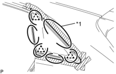 (1) Using a knife, cut away excess adhesive on the contact surfaces of the vehicle body as shown in the illustration.