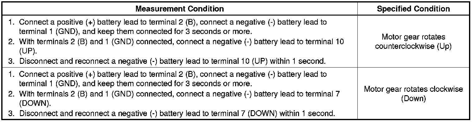 (b) Connect a ground lead to connector terminals 1 (GND) and 7 (DOWN) or 10 (UP).