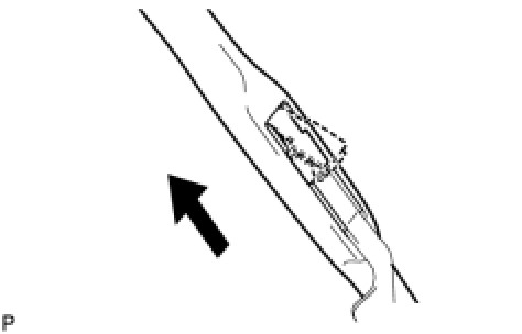 (b) Install the wiper rubber and the 2 wiper rubber backing plates to the front wiper blade with the tip of the rubber (curved end) facing the axis of the wiper arm.