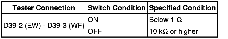 (2) Connect a battery positive (+) lead to terminal D40-2 (+B) and a negative (-) lead to terminal D39-2 (EW) and D40-1 (+S).