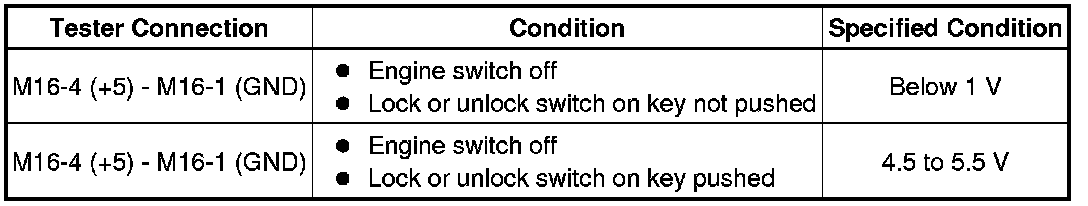 (a) When the door control switch on the master switch assembly is operated, check that the doors unlock and lock according to switch operation Operation Check.