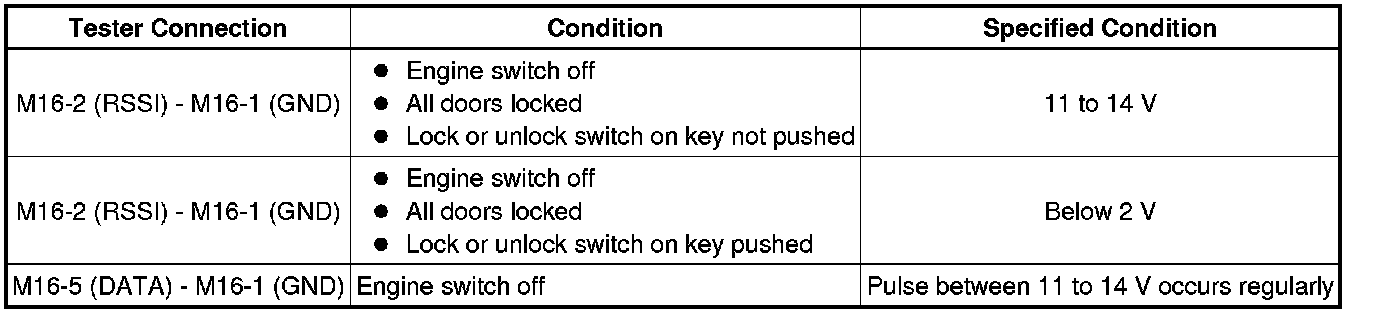 14. INSPECT DOOR CONTROL RECEIVER ASSEMBLY (DOOR CONTROL RECEIVER SIGNAL OUTPUT)
