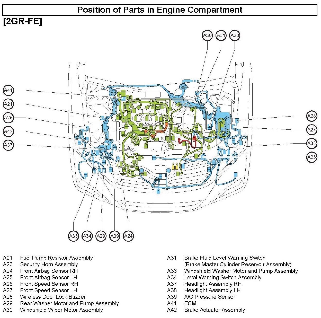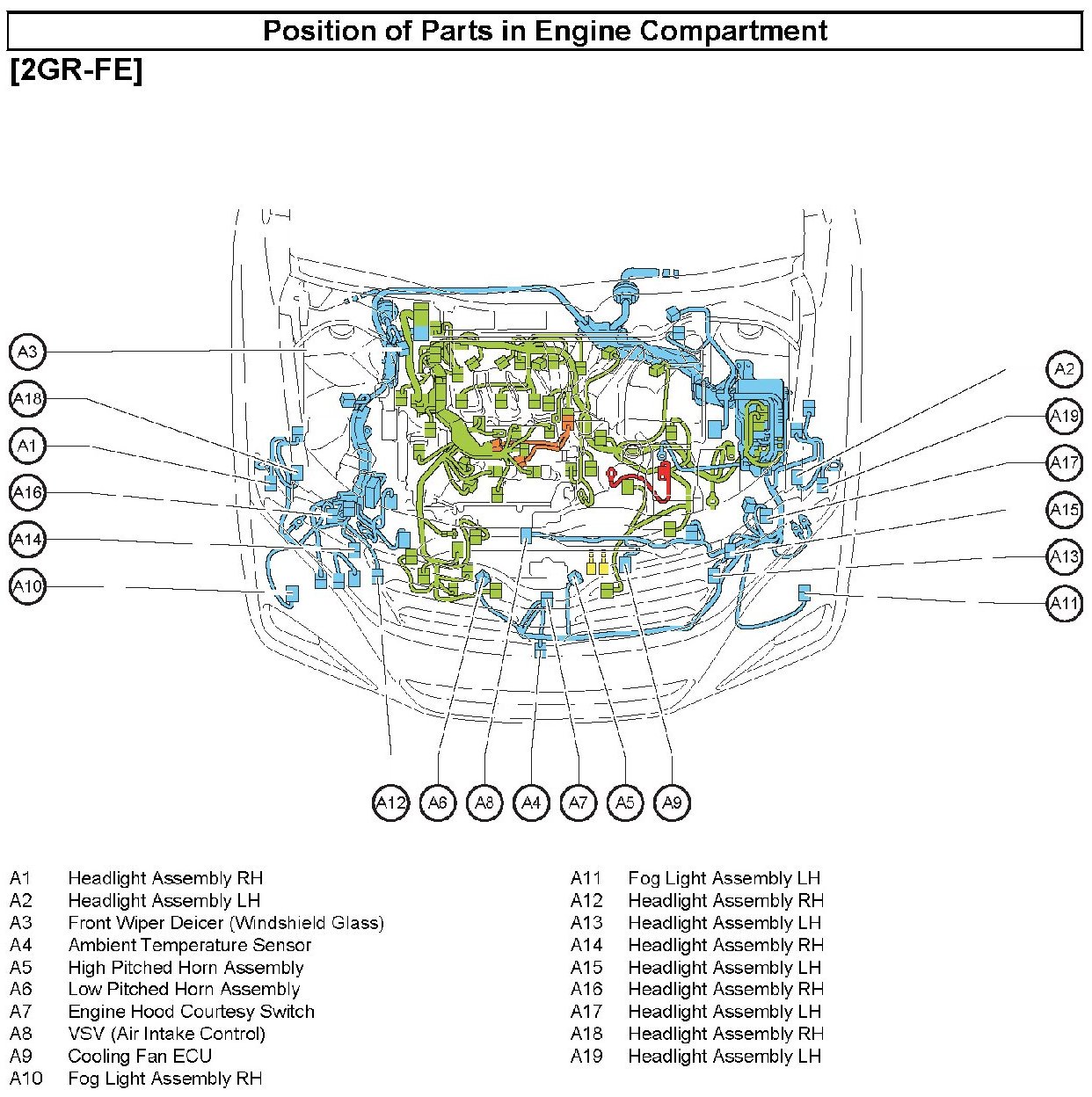 Position of Parts In Engine Compartment