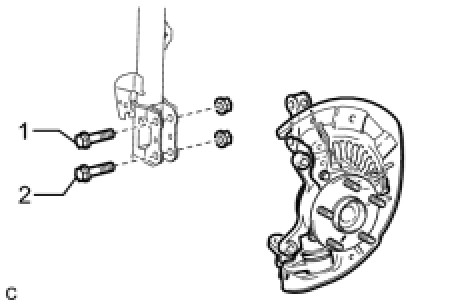 (c) Clean the installation surfaces of the front shock absorber and the steering knuckle.
