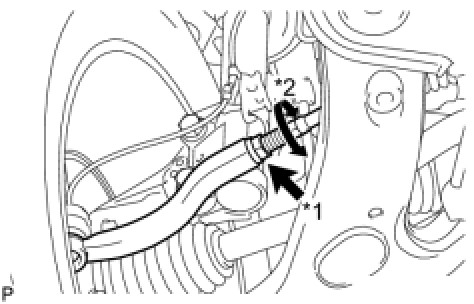 Temporarily tighten the lock nut while holding the hexagonal part of the steering rack end so that the lock nut and the steering rack end do not turn together. Hold the width across flat of the tie rod end and tighten the lock nut.