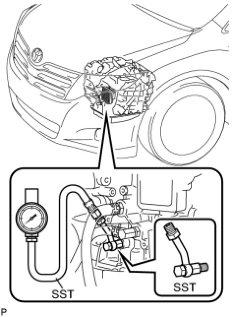 (4) Remove the test plug on the transaxle case front left side and install the SST.