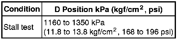 (14) Firmly depress the brake pedal, move the shift lever to D, depress the accelerator pedal all the way down, and check the line pressure while the stall test is performed.
