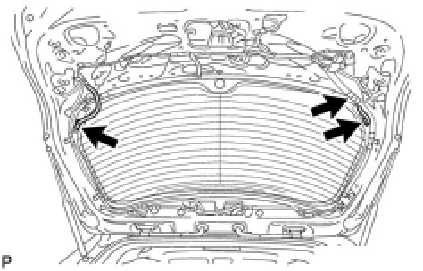 (1) Using a knife, cut away excess adhesive on the contact surfaces of the vehicle body, as shown in the illustration.