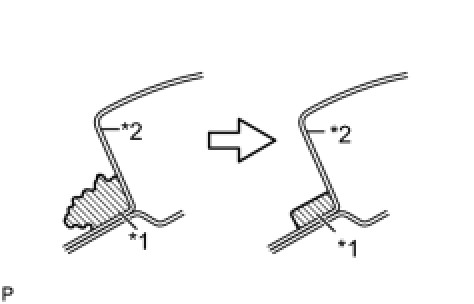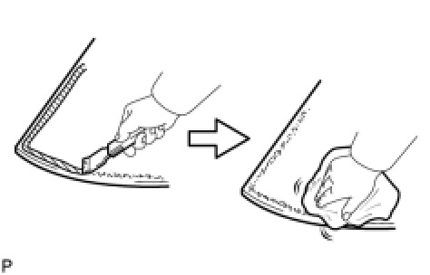 (1) Using a knife, cut away excess adhesive on the contact surfaces of the vehicle body, as shown in the illustration.