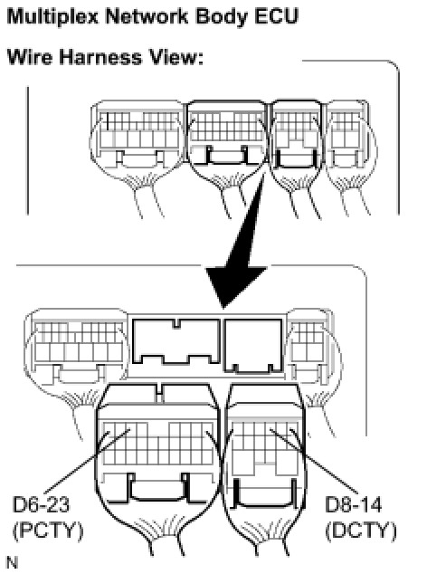 (b) Disconnect the multiplex network body ECU (D6, D8) connectors.