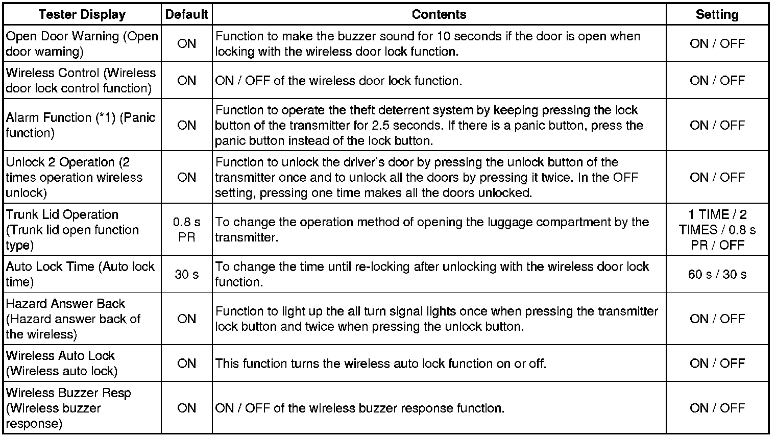 * The function only switches the entry unlock of the smart key system. It does not switch the unlocking of the wireless door lock remote control.