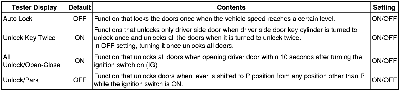 DOOR LOCK: POWER DOOR LOCK CONTROL SYSTEM: CUSTOMIZE PARAMETERS
