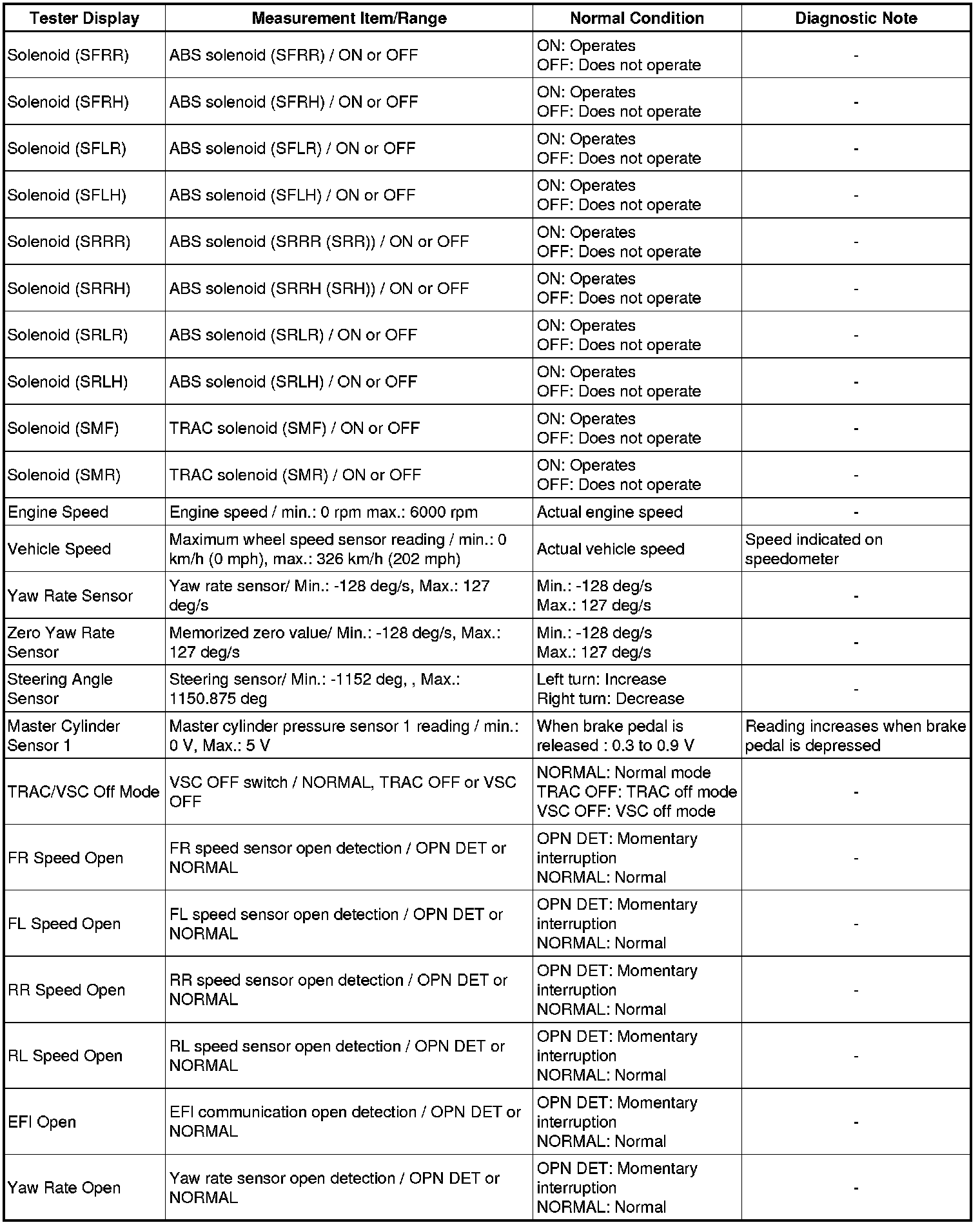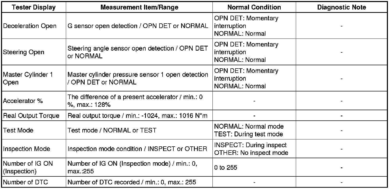 BRAKE CONTROL: VEHICLE STABILITY CONTROL SYSTEM: DATA LIST / ACTIVE TEST