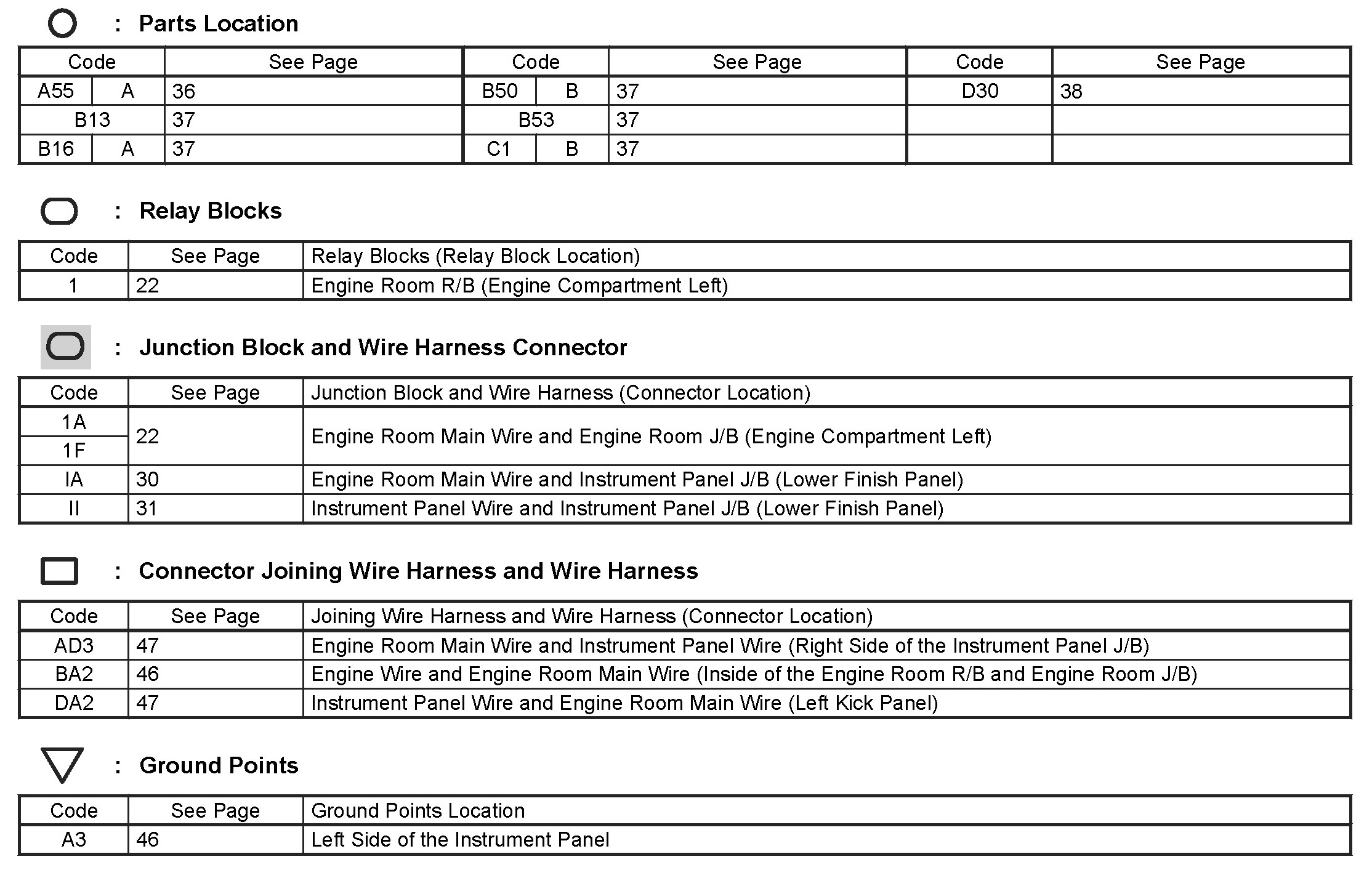 Locations: The locations of components, connectors, ground points, and splices referred to within these diagrams can be found at Vehicle Locations. Locations