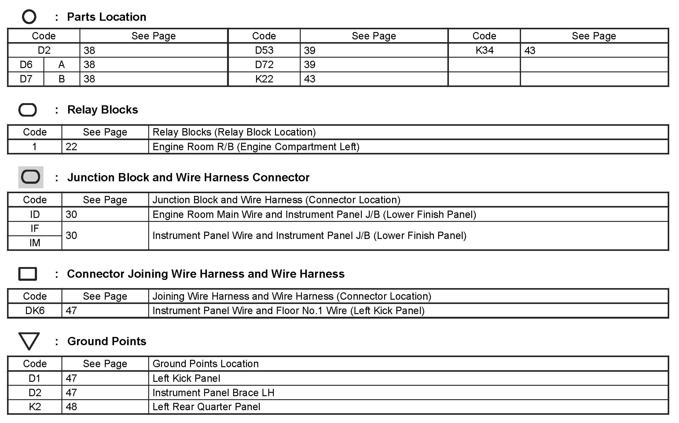 Locations: The locations of components, connectors, ground points, and splices referred to within these diagrams can be found at Vehicle Locations. Locations