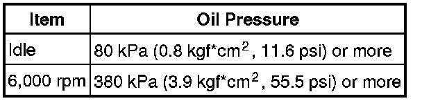 If the oil pressure is not as specified, check the oil pump Testing and Inspection.