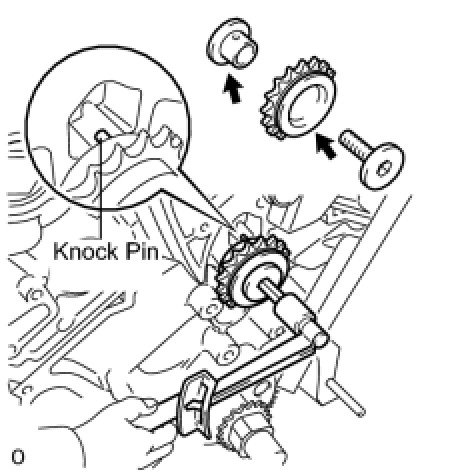 (c) Align the knock pin of the camshaft with the pin hole of the camshaft timing gear. Install the camshaft timing gear and camshaft timing exhaust gear LH with the No. 2 chain sub-assembly installed.