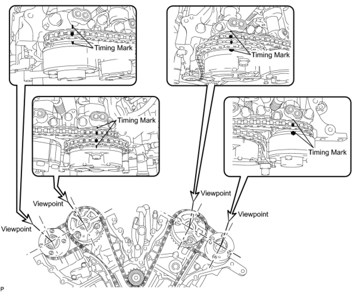 * If the timing marks are checked from any other viewpoint, the valve timing may appear misaligned.