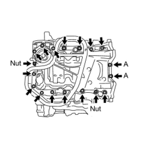 Be sure to replace the bolts indicated by A with new ones or reuse them after applying adhesive 1344.