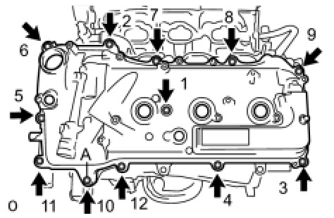(c) Install a head cover with the 12 bolts and a new washer.