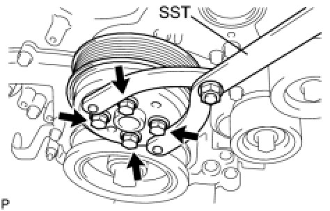 (a) Temporarily install the water pump pulley with the 4 bolts.