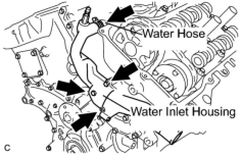 (b) Install the water inlet with the 2 bolts and nut.