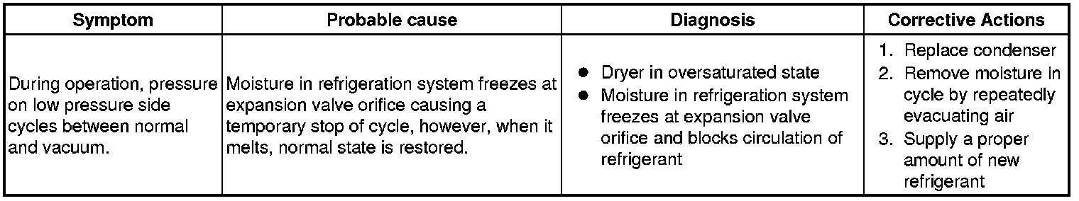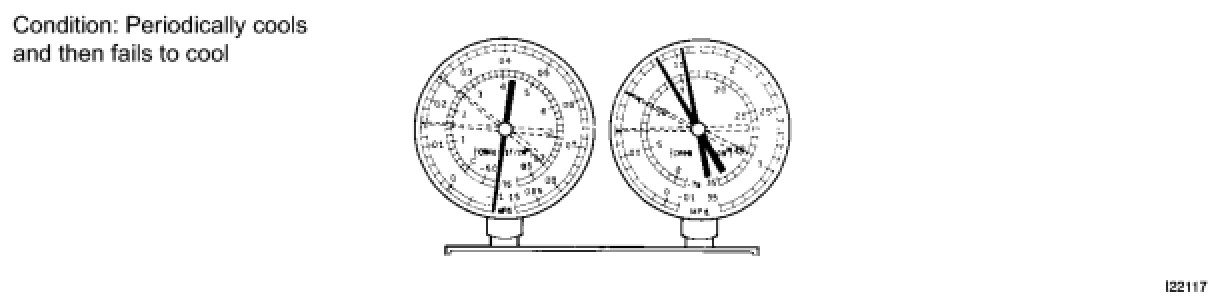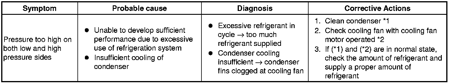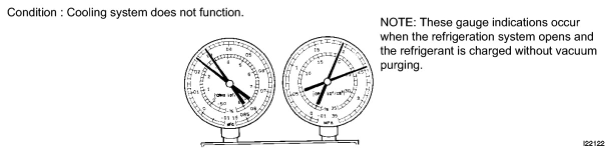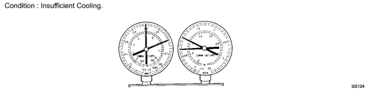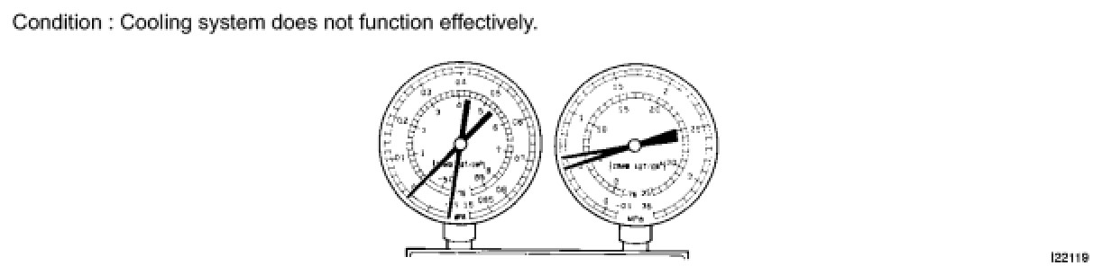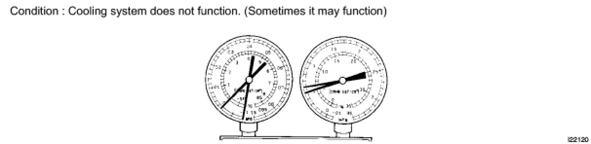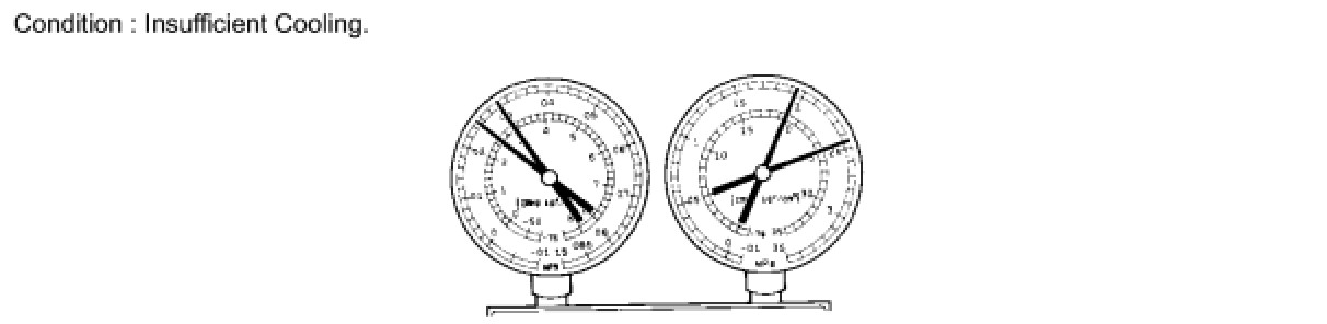 (a) This is a method in which trouble is located by using a manifold gauge set. Read the manifold gauge pressure when the following conditions are established.