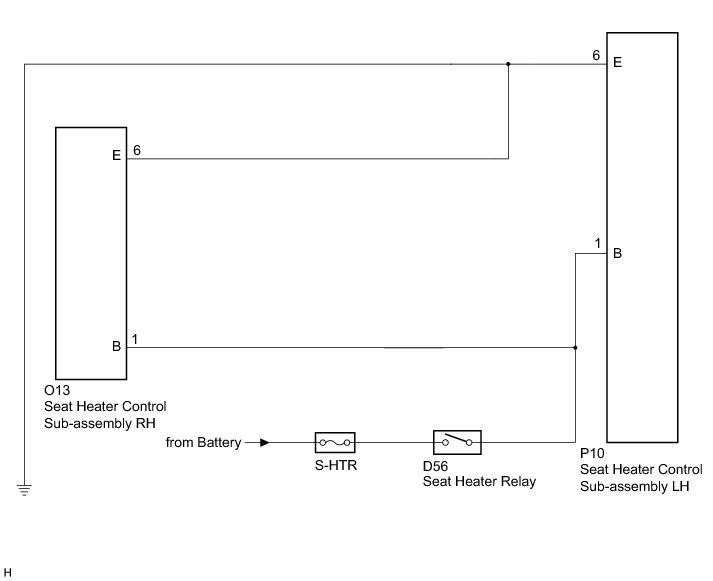 Battery voltage is supplied to the seat heater control sub-assembly through the S-HTR fuse.