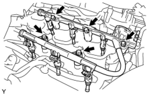 (h) Tighten the 5 bolts which are used to hold the fuel delivery pipe to the intake manifold.