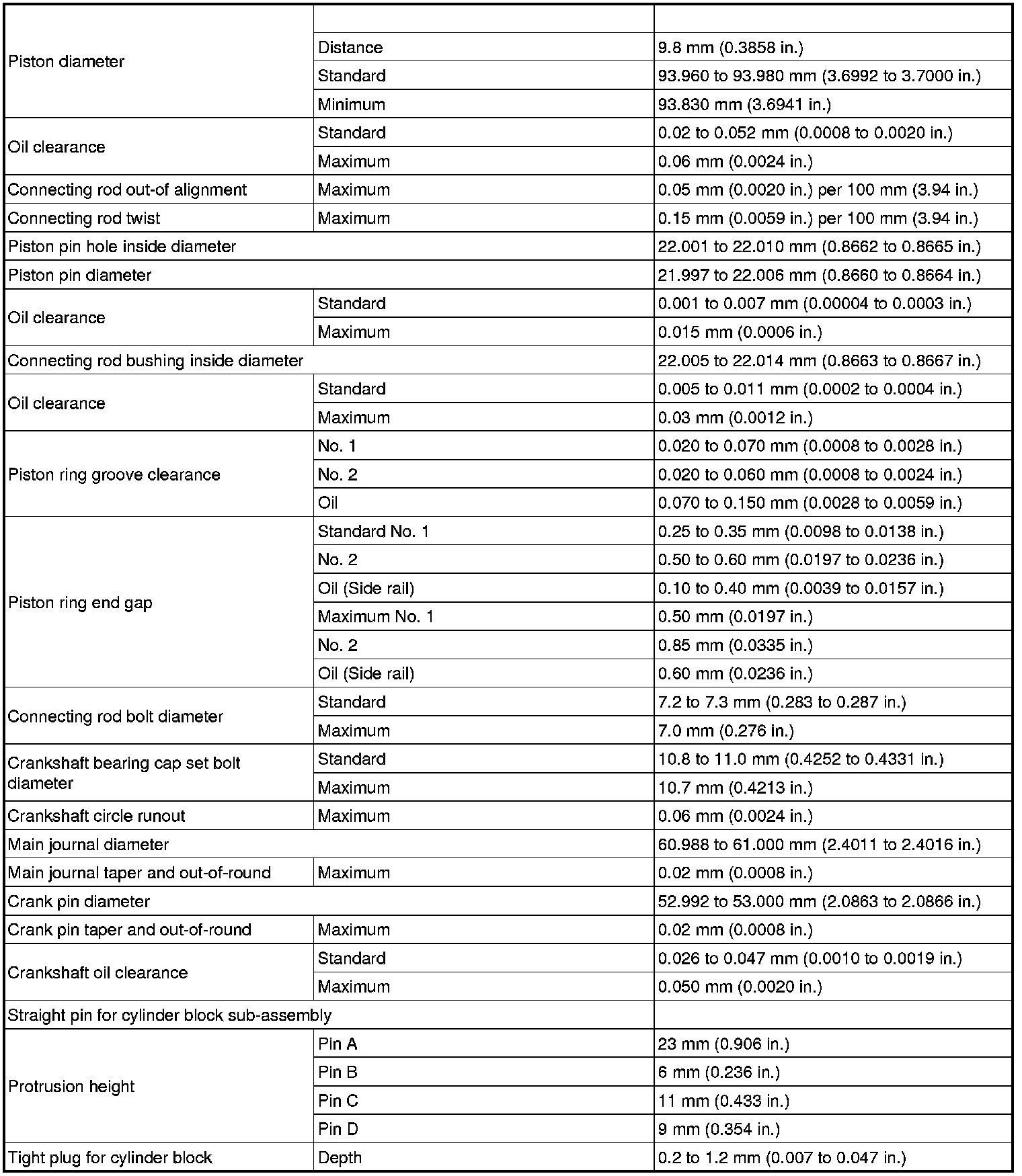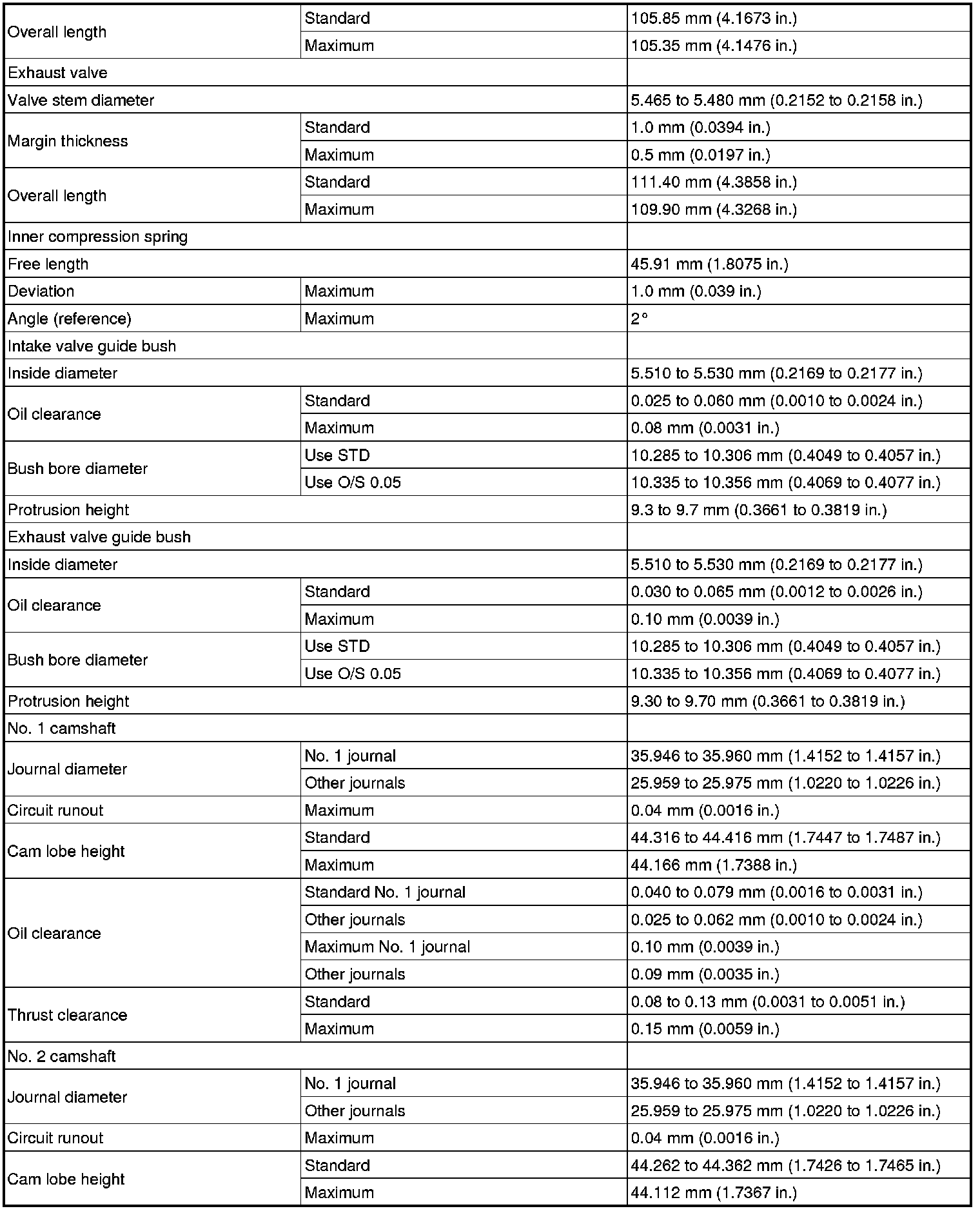 SERVICE SPECIFICATIONS: 2GR-FE ENGINE MECHANICAL: SERVICE DATA