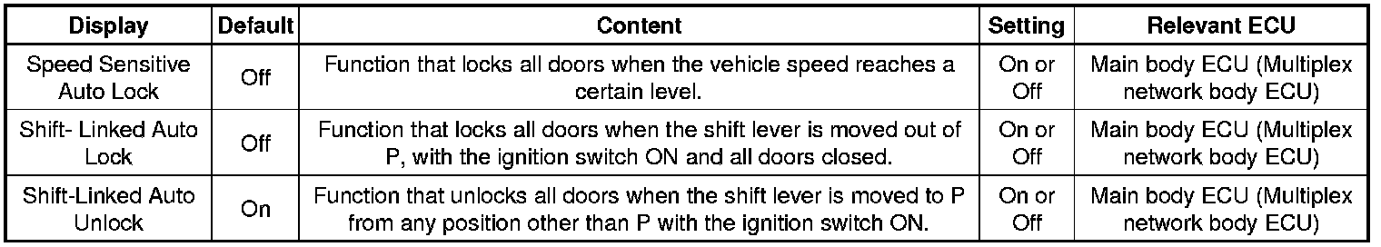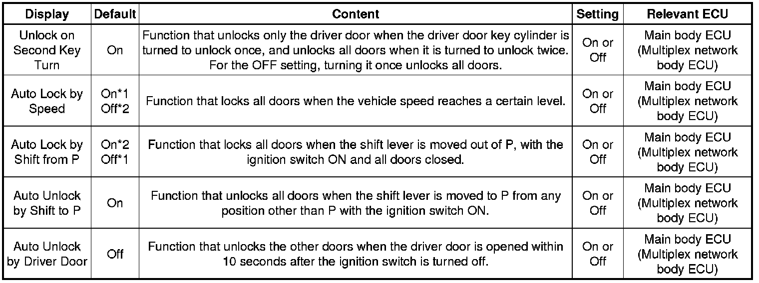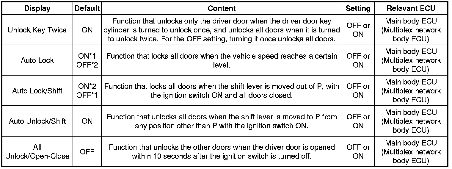 DOOR LOCK: POWER DOOR LOCK CONTROL SYSTEM: CUSTOMIZE PARAMETERS