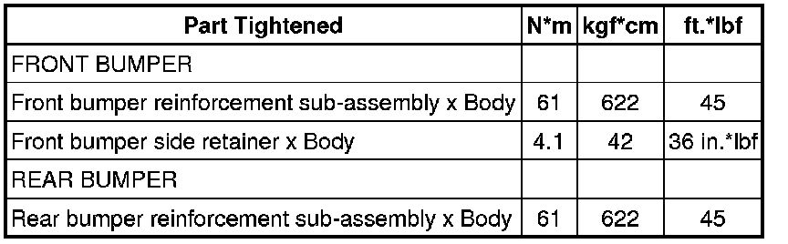 SPECIFICATIONS: EXTERIOR PANELS / TRIM: TORQUE SPECIFICATIONS