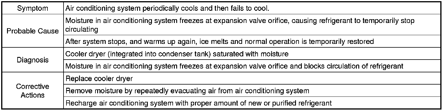 For the example above, moisture is present in the air conditioning system.