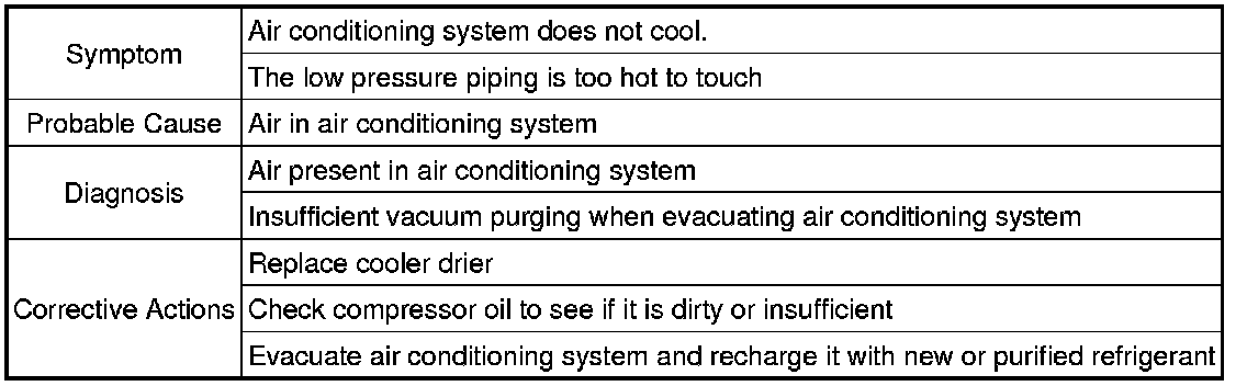 For the example above, air is present in the air conditioning system.