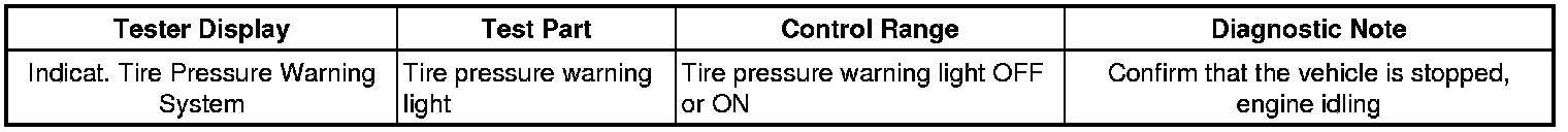 TIRE PRESSURE MONITORING: TIRE PRESSURE WARNING SYSTEM: DATA LIST / ACTIVE TEST