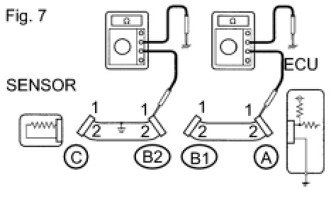 (a) For an open circuit in the wire harness in Fig. 1, measure the resistance and voltage as follows: