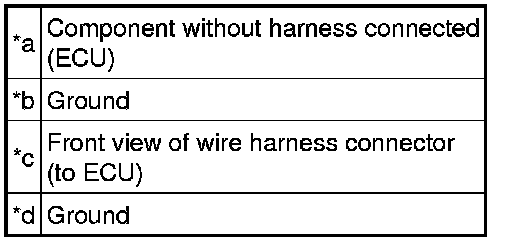 * The connector should not be disconnected from the ECU. Perform the inspection from the backside of the connector on the wire harness side.