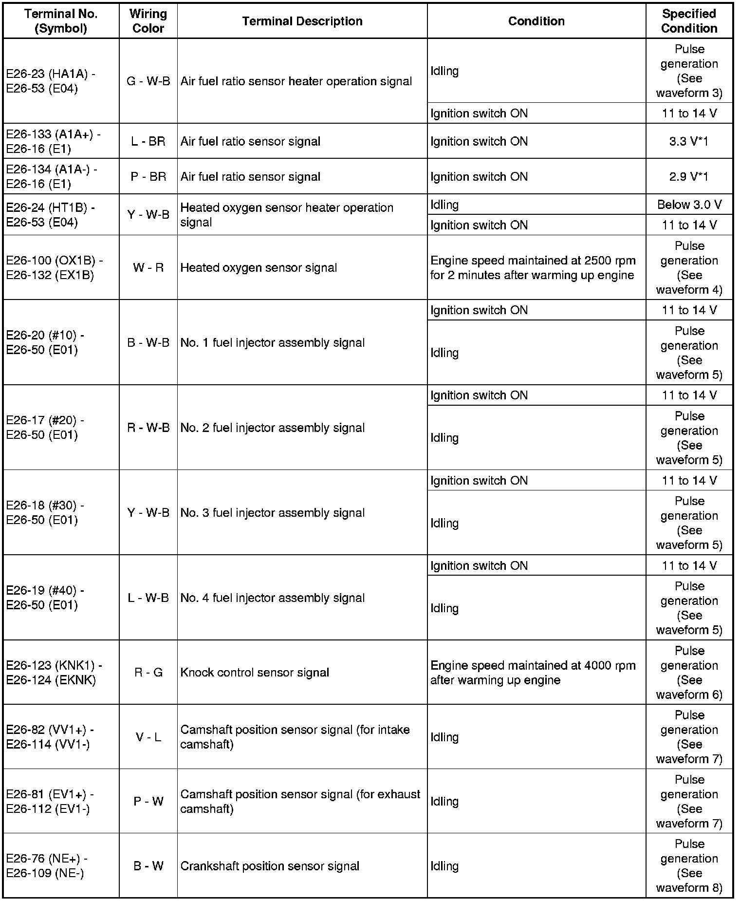 No. 1 (to No. 4) Fuel Injector Assembly Signal