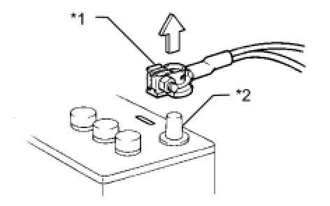 * After the ignition switch is turned off, the navigation receiver assembly (for Navigation Receiver Type) or radio and display receiver assembly (for Radio and Display Type with Intuitive Parking Assist System) records various types of memory and settings. As a result, after turning the ignition switch off, make sure to wait at least 60 seconds before disconnecting the cable from the negative (-) battery terminal.