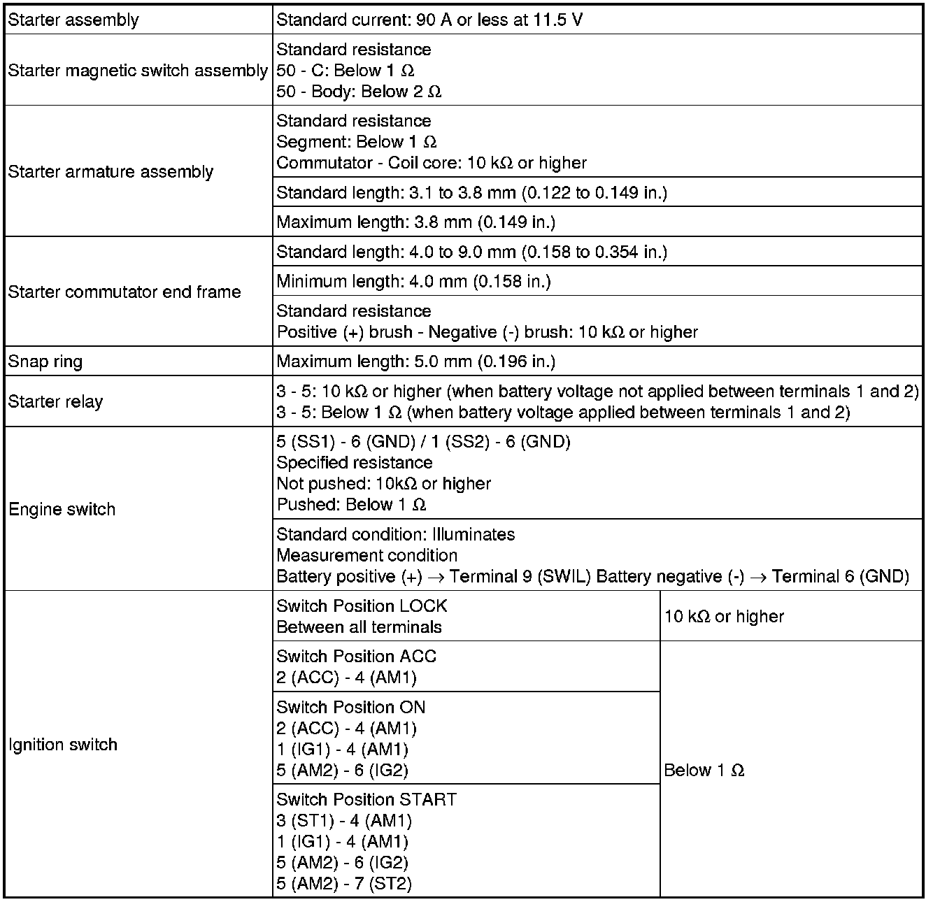 SPECIFICATIONS: 2AR-FE STARTING: SERVICE DATA