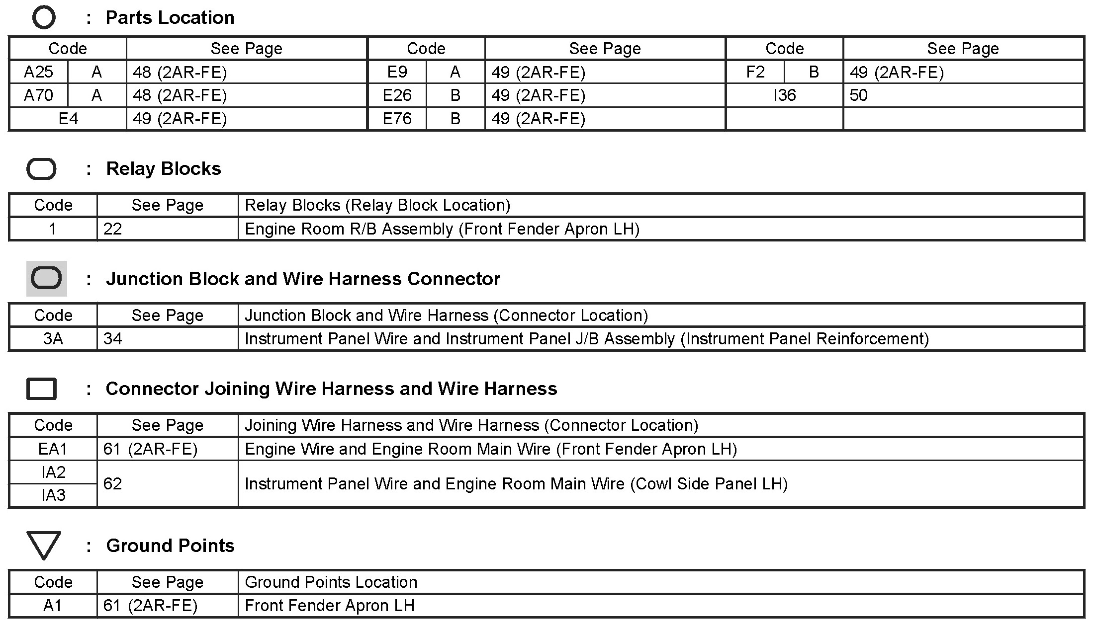Locations: The locations of components, connectors, ground points, and splices referred to within these diagrams can be found at Vehicle Locations. Locations
