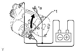 (4) Check that the starter rotates smoothly and steadily while the pinion gear is moving out. Then measure the current.