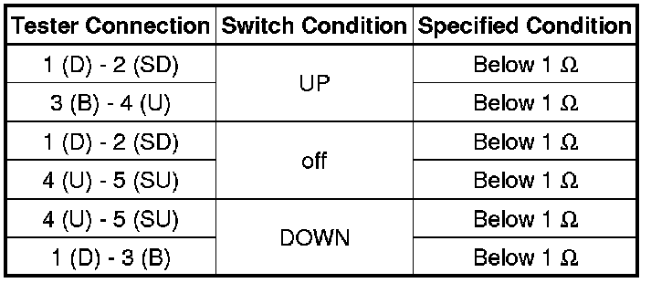 (1) Measure the resistance when the switch is operated according to the value(s) in the table below.