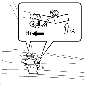 (b) Engage the 2 claws to install the washer nozzle sub-assembly as shown in the illustration.