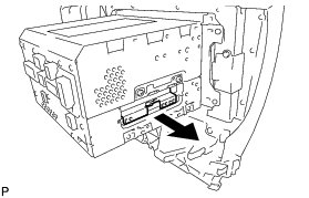 (c) Pull out the hard disk drive from the navigation receiver assembly or radio and display receiver assembly in the direction shown by the arrow in the illustration to remove it.